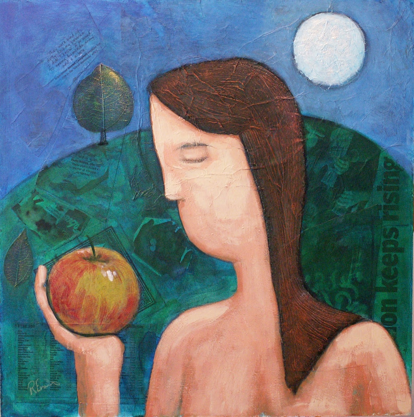 In my more recent work 'Forbidden fruit' and the unpublished work that currently on my easel utilise suggestions of symbolism in the use of the apple.